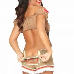 Look fabulous by slipping into an ultra-flirty fancy costume; a sexy gingy costume from 3 wishes! This three piece Ginger Bread costume includes a polka dot bow tie, halter tie neck romper featuring front cookie button detail, and peek-a-boo hook-and-loop window bottom. It also comes with an off the shoulder crop top. The super cute costume is irresistibly cute and guaranteed to bring out the sexy siren in you. Spice up your special evening in the bedroom, and make your Halloween, or fancy dress night out more entertaining by wearing this costume. We bring you the best collection of sexy gingy costumes made from premium quality material, at affordable prices. Our sexy gingy costumes are comfy, fun to wear, and will certainly make you feel confident. Shop the hottest styles of sexy costumes at 3wishes today!