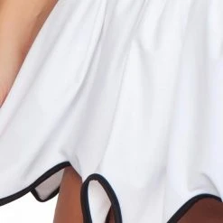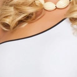 If prehistoric tennis was a thing, you’d certainly want to be wearing this adorable white Stonerock Wench Dress Costume, complete with a stone rock pearl necklace! This sexy single strap dress has a gathered dropped waist, built in petticoat and jagged hem with black piping. This is a fun Halloween costume but this dress is so cute you could even rock it at a summer or tennis party. Stone age style is back in the Stonerock Wench Dress Costume.