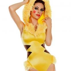 You gotta catch ’em all. This Collectible Anime’ Cutie costume includes a yellow bodysuit with faux fur trim, brown stripe sides, attached tail, attached faux fur hood with attached ears and faux fur leg warmers. Get that Pikachu look this Halloween
