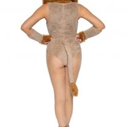 This two-piece, Savage Lion costume includes an ultra-soft lace up bodysuit with a snap crotch, attached furry mane hood and tail, and fur trimmed paw sleeves.