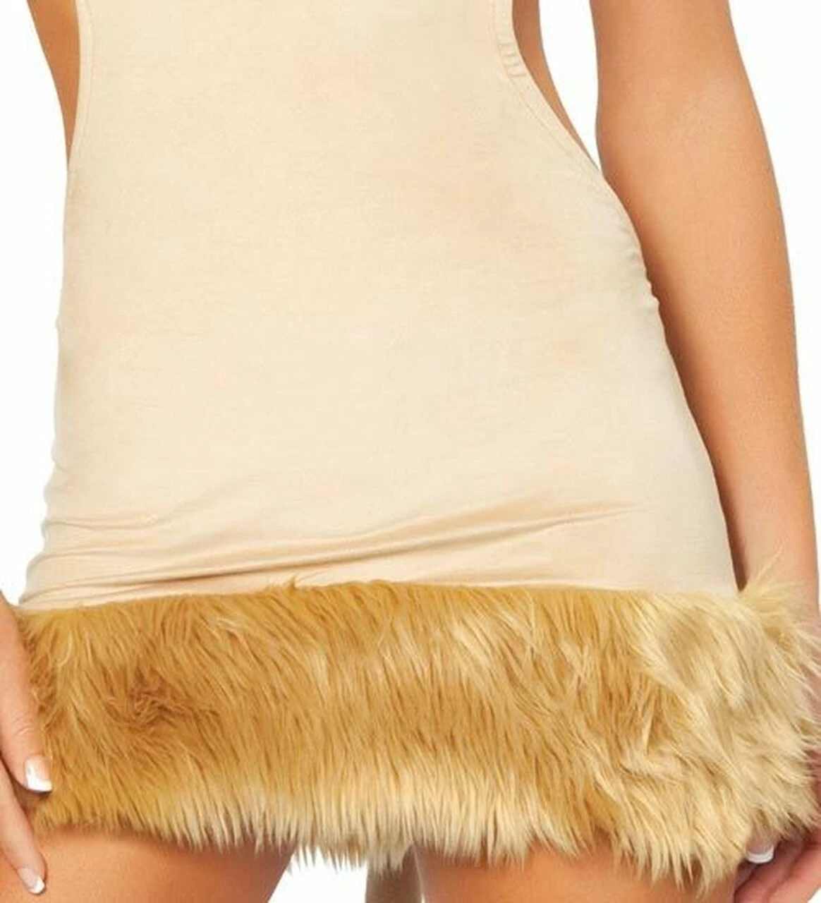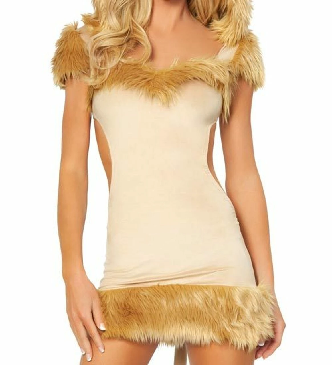You will feel plenty courageous when you slip into this nude colored costume with a mini-skirted dress and plenty of fur trim. You’re going to feel a little on the rich side as well (who doesn’t love wearing fur after all?). The tail is attached to the more skin-baring back of the dress and the entire outfit is topped off with a cute fur hood with ears. When paired with the fur leg warmers you’re not going to have any trouble staying warm and comfortable and warm throughout the night (whether you’re looking for a new partner or not).